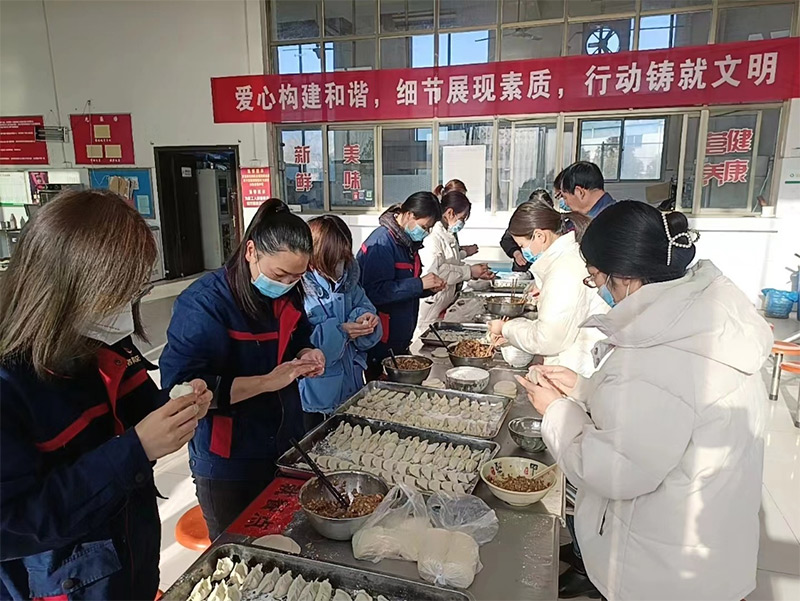 本次活動在工業(yè)公司工會組織帶領(lǐng)下有序開展,干部職工一起動手,大家分工協(xié)作、默契配合,現(xiàn)場熱鬧喜慶。大家被"家的味道"包圍著,讓每一位參與其中的員工感受到了濃濃的溫暖和情誼。在大家的共同參與下,一個個獨具特色,白胖胖、圓乎乎的餃子便擺滿了餐桌。當熱氣騰騰的餃子端上桌時,香氣四溢,員工爭先恐后地尋找著自己包的餃子,品嘗著美食,分享著快樂。