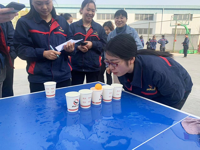 今年的慶?;顒佑卸嗳颂K、蒙眼敲鑼、夾彈珠、吹兵乓球、呼啦圈等比賽項目。賽前,參賽人員列隊,公司黨總支副書記、工會主席王鐵秀同志向公司全體女同志致以節(jié)日的問候并祝愿大家工作愉快、生活幸福!